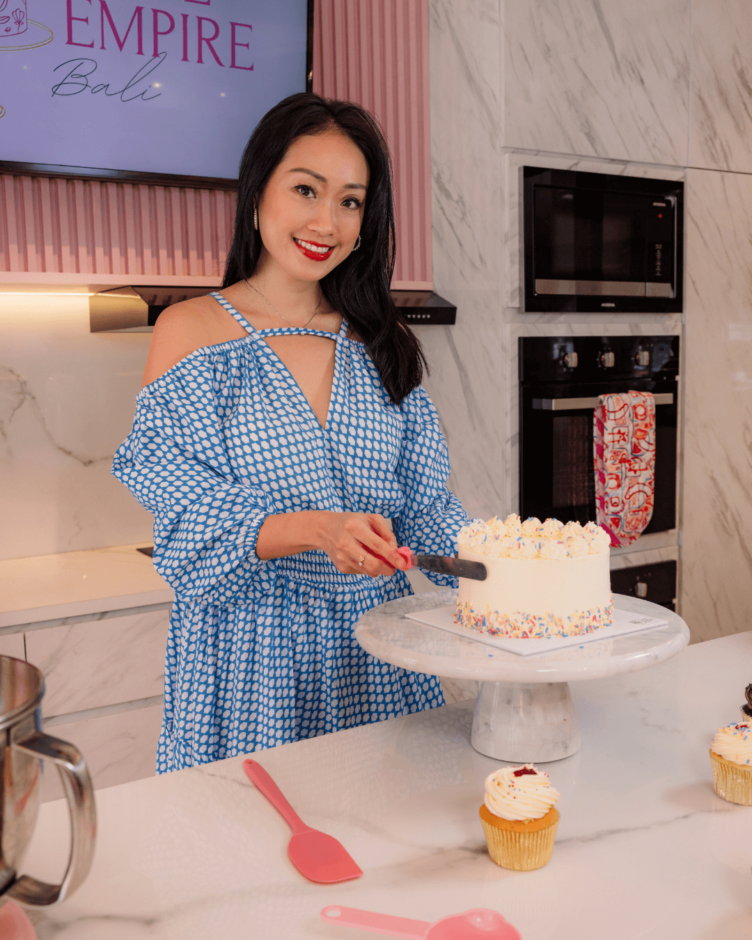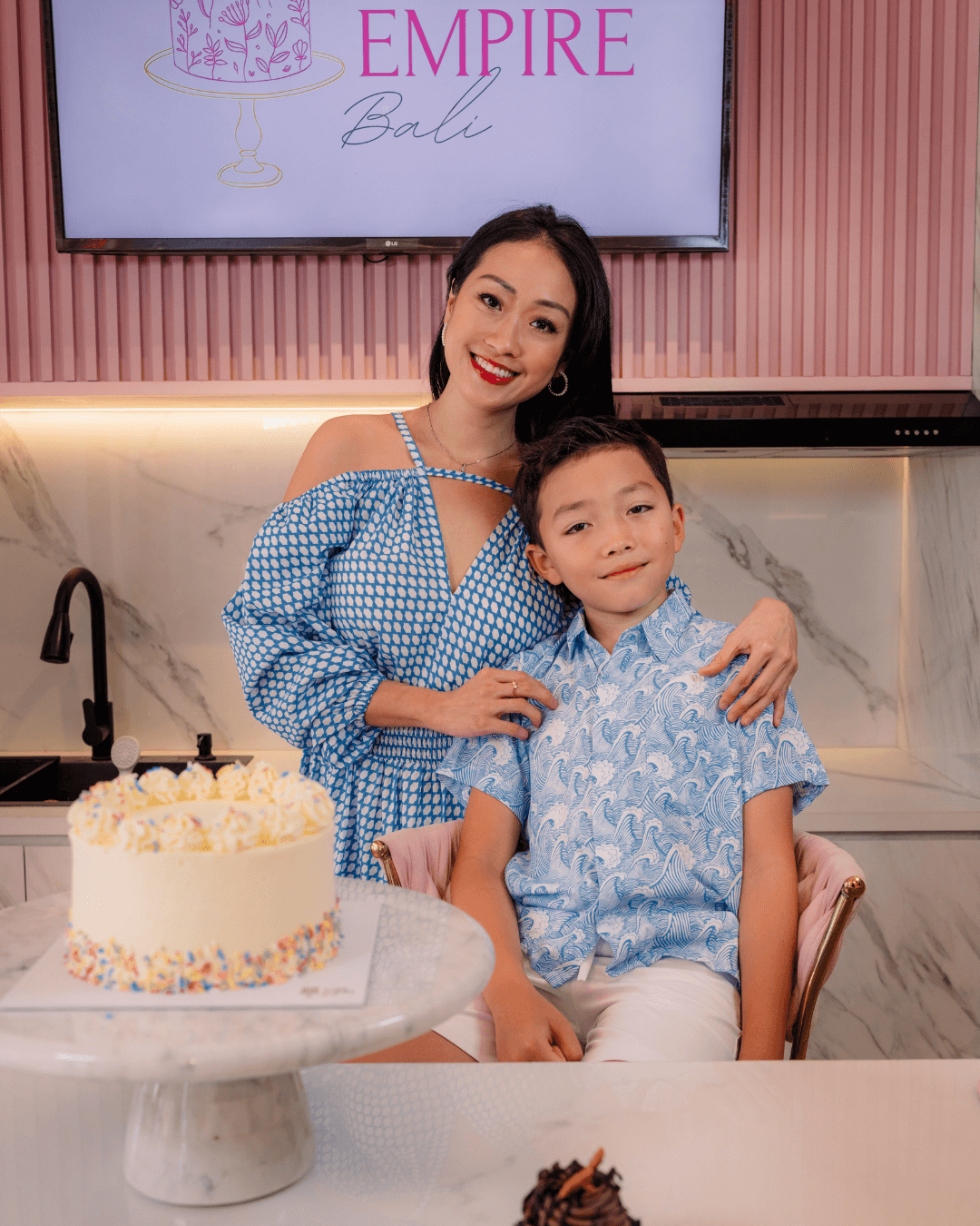 Meet Melina of @cakeempire.id — a loving mom, wife, and cake artist whose heart shines through every creation. Inspired daily by her husband and son, Charlie, Melina finds joy in life’s sweetest moments—whether it’s baking together at home, teaching others her craft, or watching happy faces light up over her cakes.