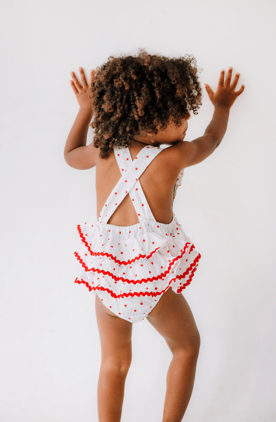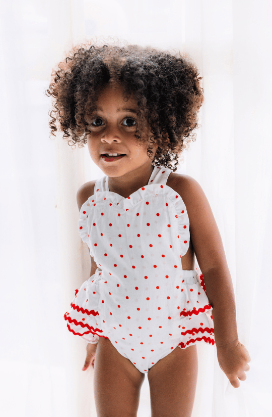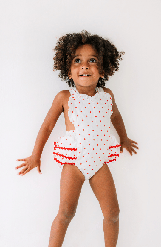 Scoop Romper in Red Polkadot