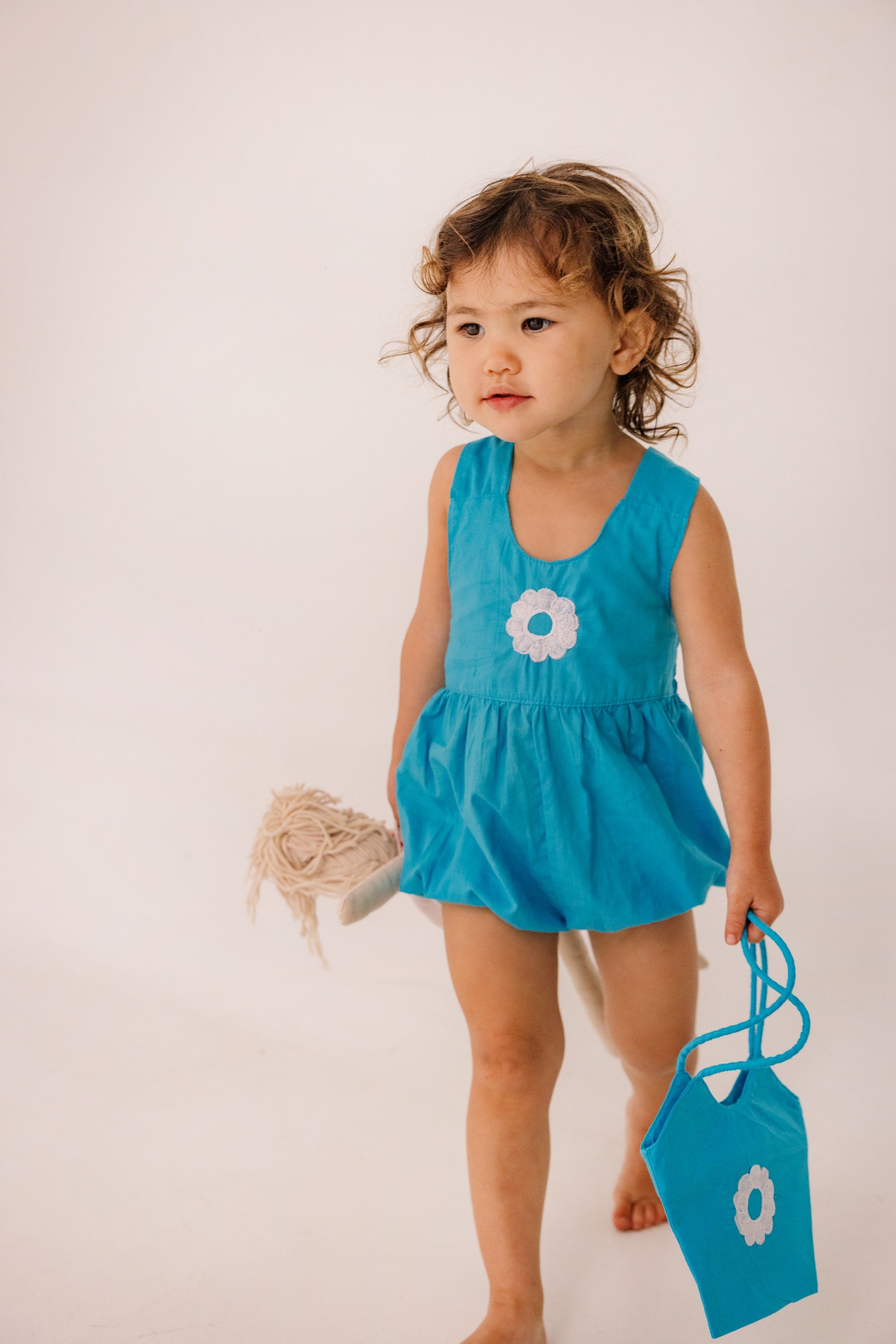 Jackie Romper Embroidery in Cyan Blue
