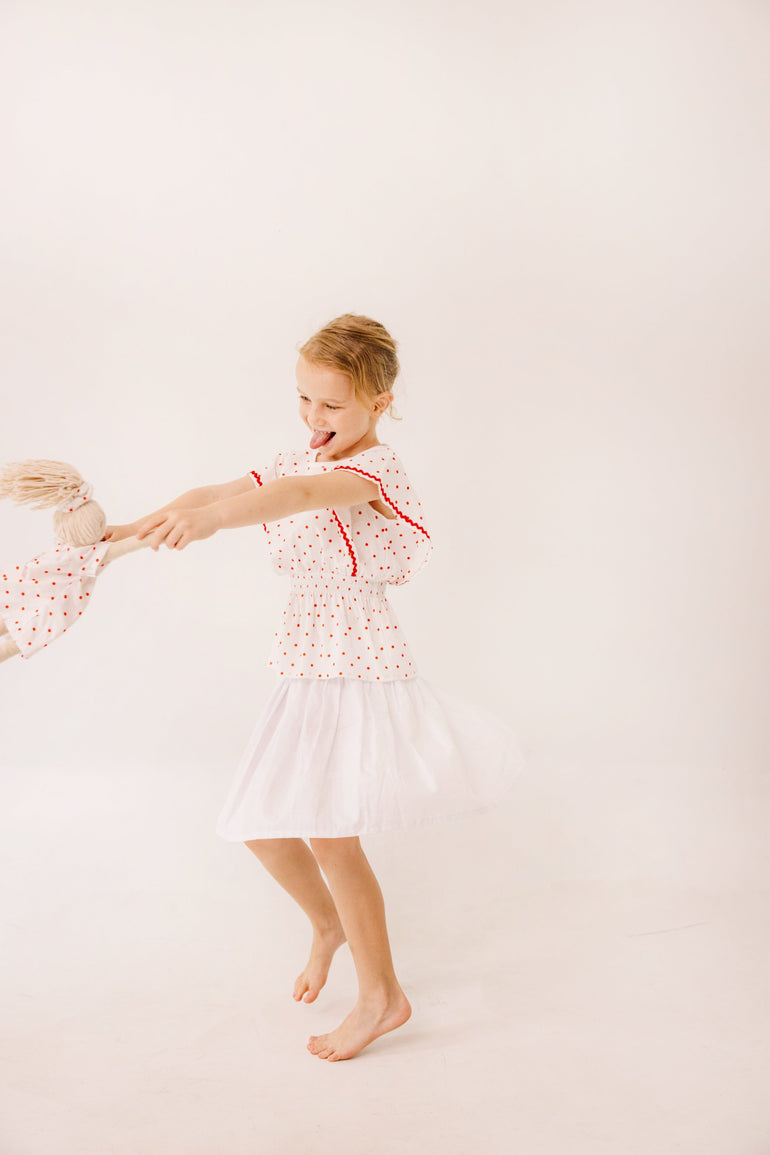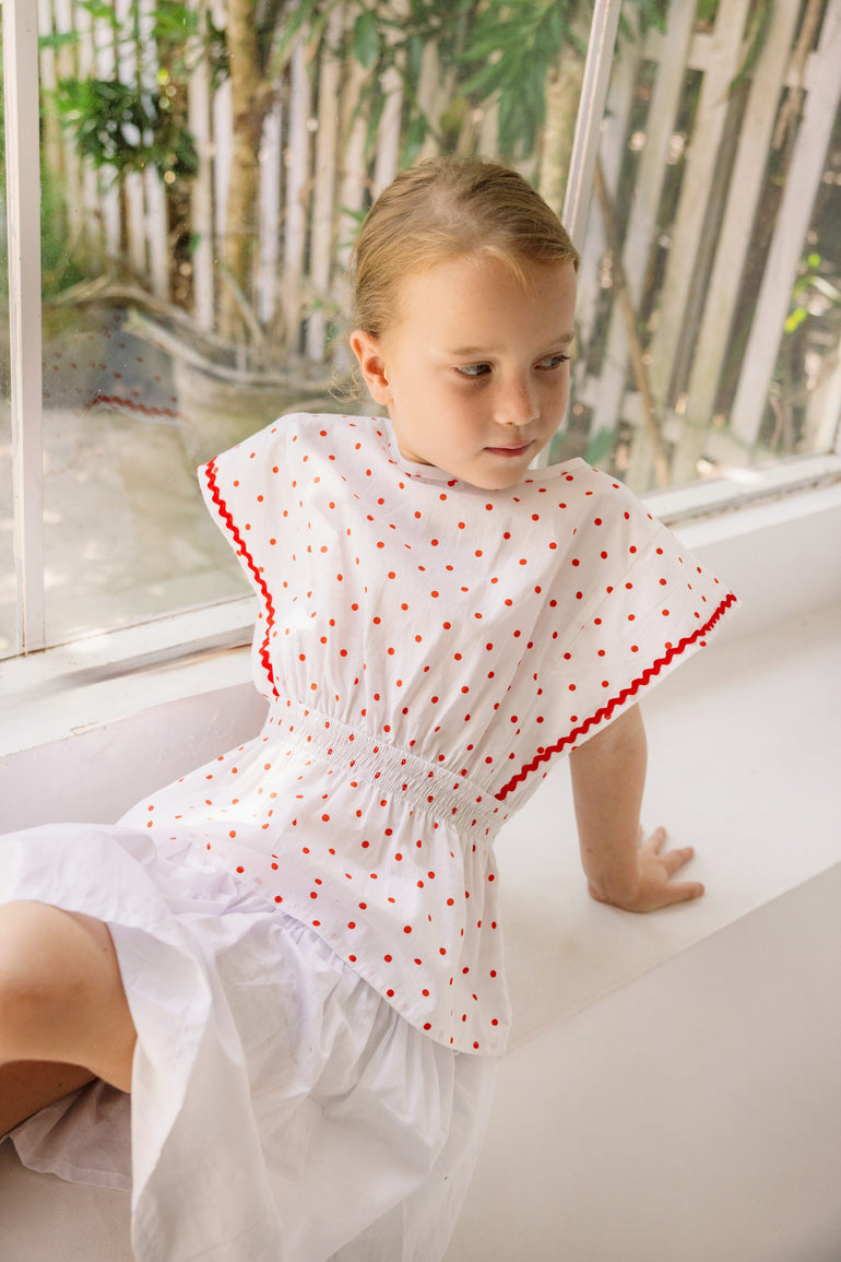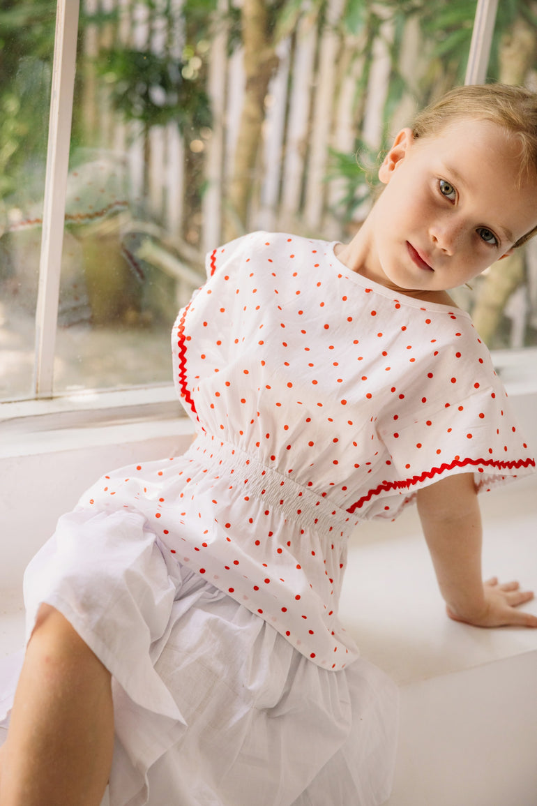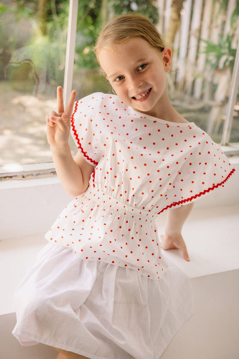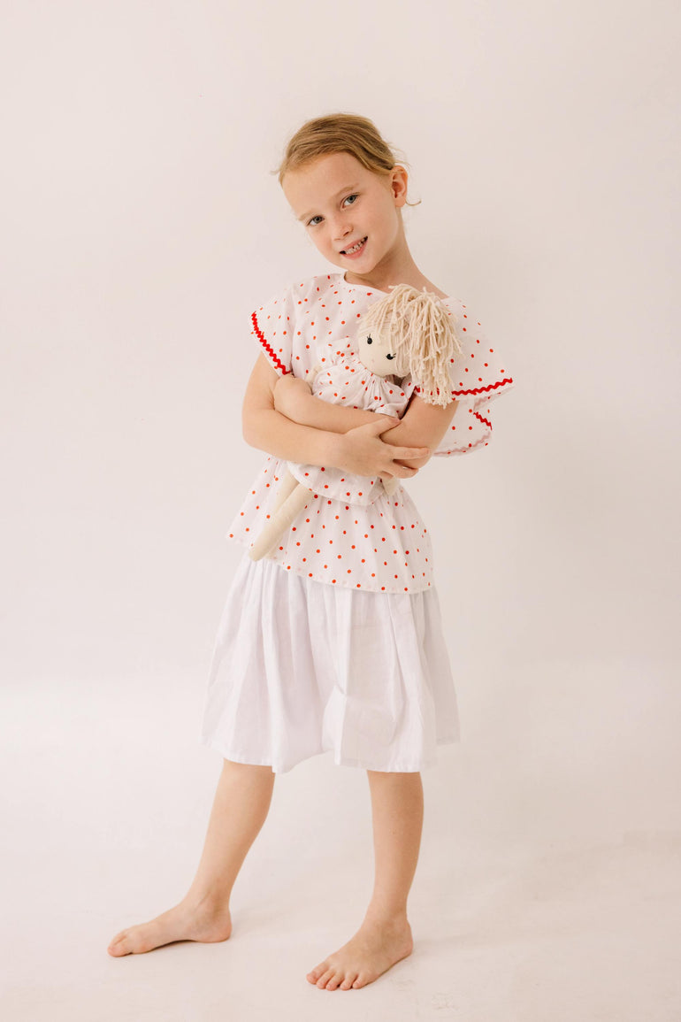 Style notes Create a coordinated and stylish look by pairing the Felicia Top with the Felicia Skirt from our Girls Skirt collection. This matching ensemble offers a cohesive and fashionable outfit for your little girl. To complete the look for a beach day or outdoor playtime, add a floppy sun hat and a pair of comfortable flip-flops. This combination not only keeps her protected from the sun but also adds a playful and summery touch to her outfit.