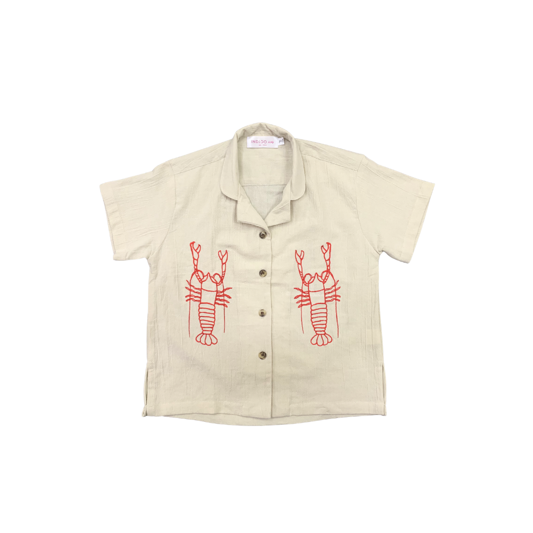 Shawn Shirt in Natural Lobster Red Embroidery