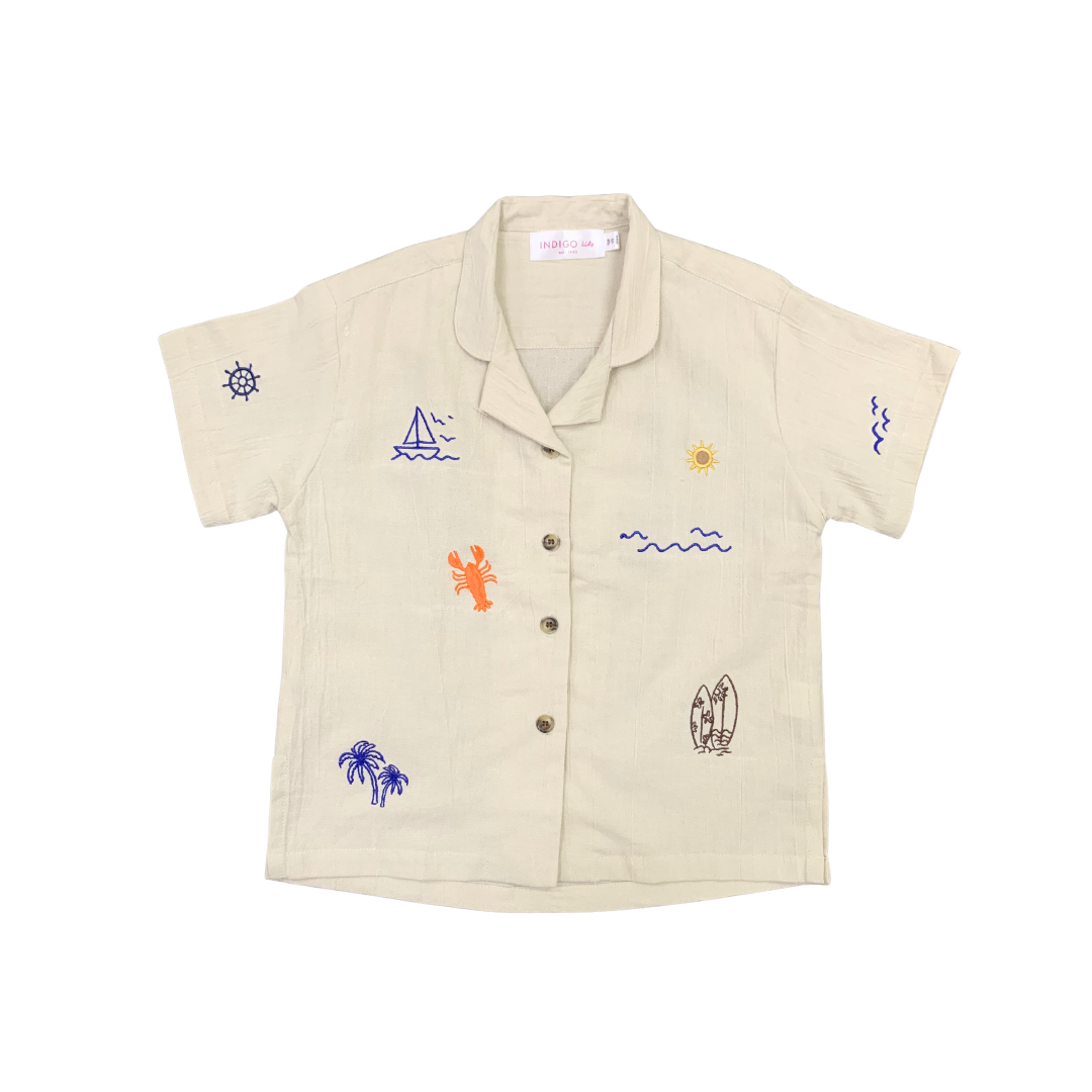 Shawn Shirt in Cream Sardine Brown Embroidery