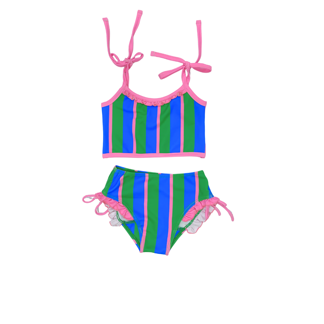 Bikini Set in Caprie Stripe Shamrock Green French Blue Pink