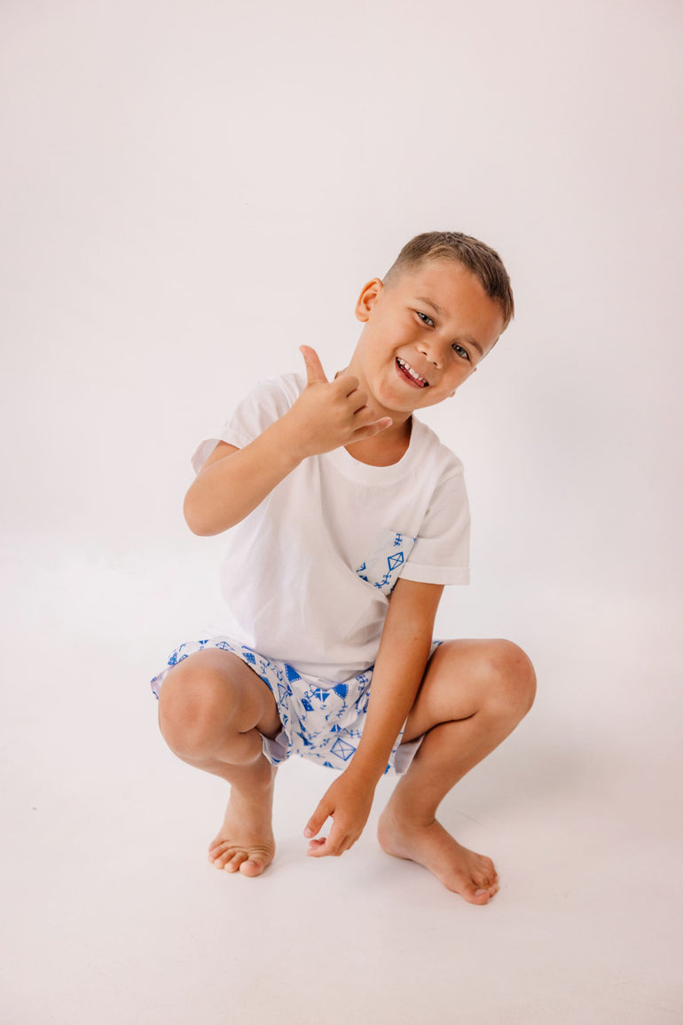 Playful and Cozy, Perfect Sets for Baby! Experience the perfect blend of comfort, cuteness, and style with the Bondi Set for baby boys. Designed with an elastic waist, this outfit ensures maximum comfort for your little one's all-day activities while looking adorable and stylish. The soft fabric and unique spectrum pattern in soft blue provide comfort and a playful touch, making your baby boy stand out in any setting!