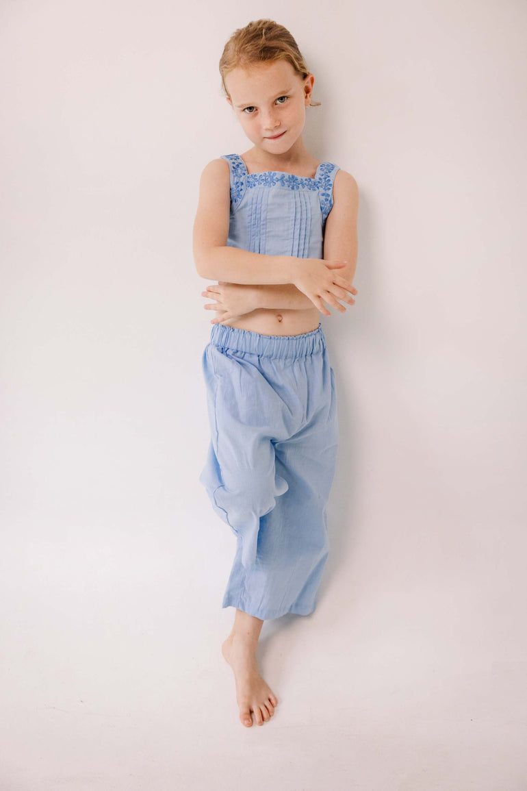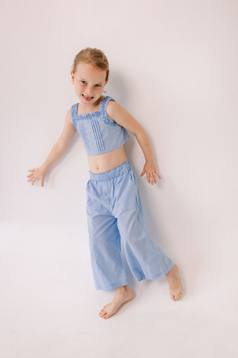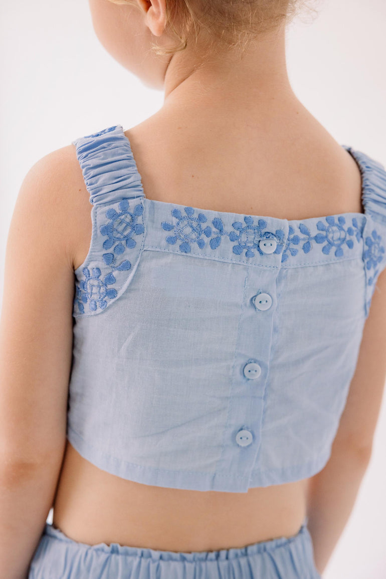 Perfect for twirling. Experience the ultimate twirling sensation with our Vaselin set top and skirt! Designed for the perfect summer vibe, this delightful ensemble features elastic shoulders and wrists for a comfortable and trendy fit. The lightweight fabric ensures you stay cool while twirling in style. Perfect for any occasion, embrace the carefree spirit of summer with this must-have set top and skirt.