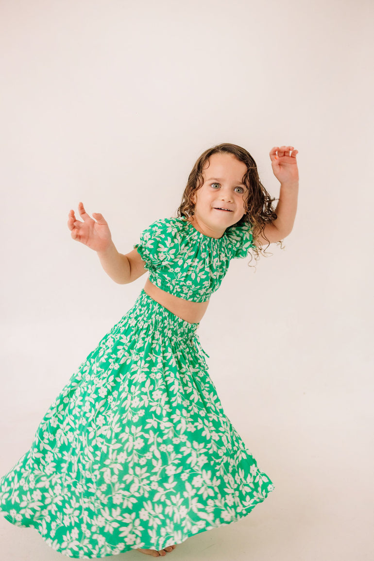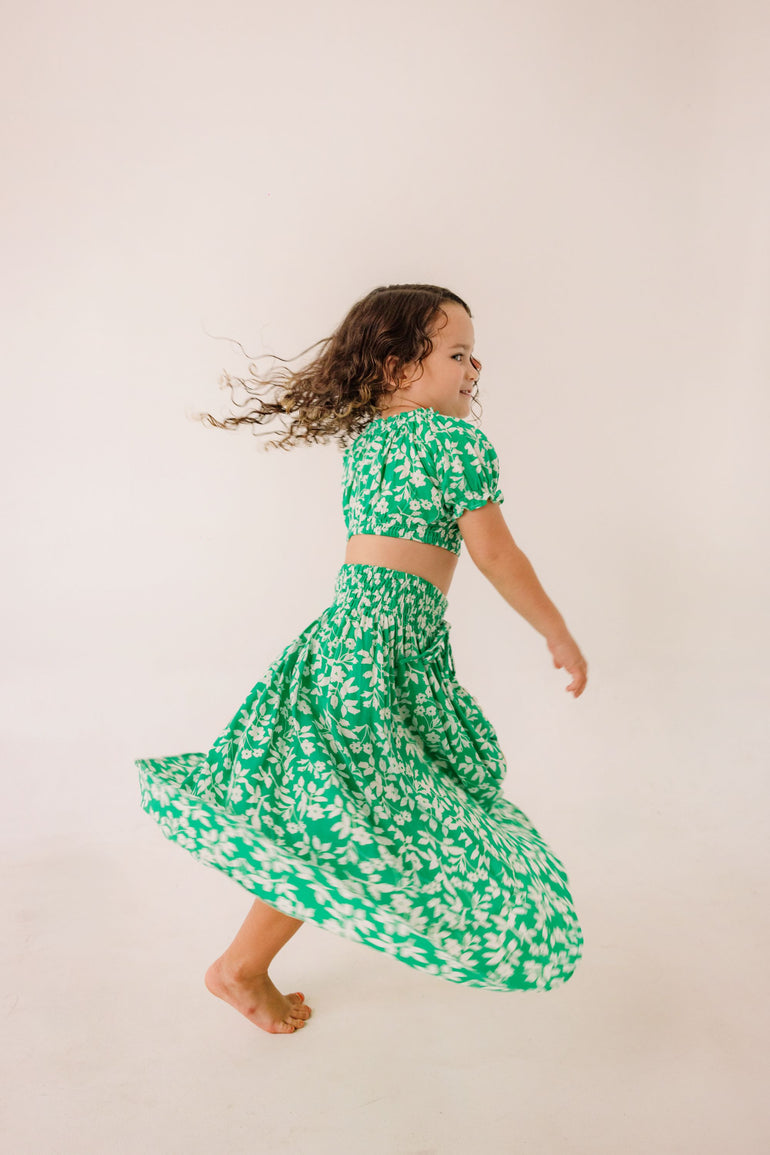 A versatile girls’ skirt that can be dressed up or down for various occasions.