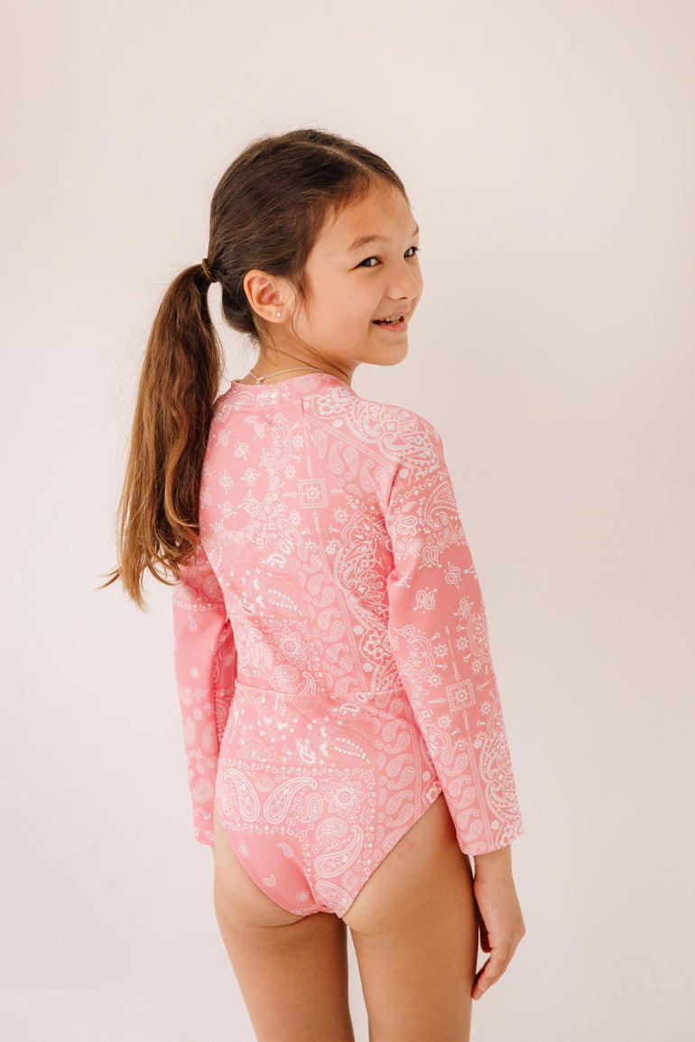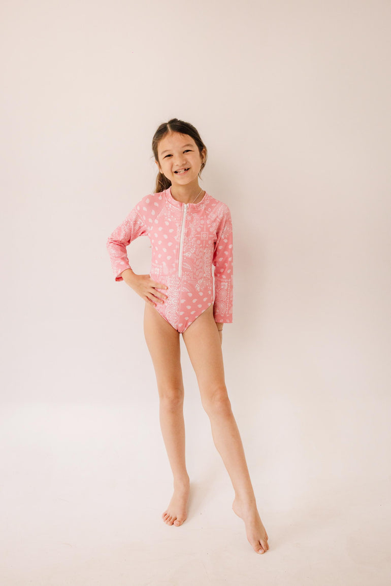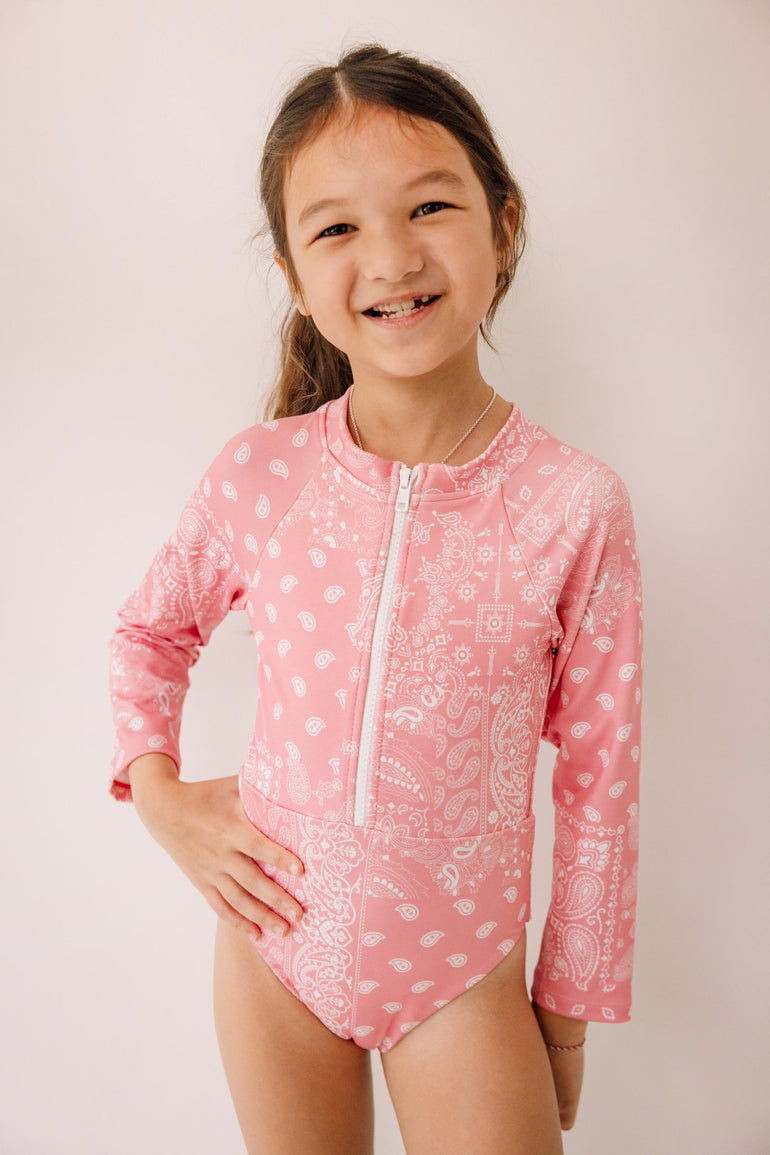 Style note, To complete her beach look, consider pairing the Zip One Piece with a trendy floppy hat or a playful sun visor, and don't forget to let her pick out her favorite sunglasses to add a playful and fashionable touch!